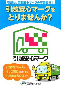 全日本トラック協会において、平成26年度に創設された「引越事業者優良認定制度」は、安全・安心な引越サービスを提供すると全日本トラック協会が認めた引越事業者を、引越優良事業者として認定するものであり、該当事業者には優良事業者の証として「引越安心マーク」が交付されます。